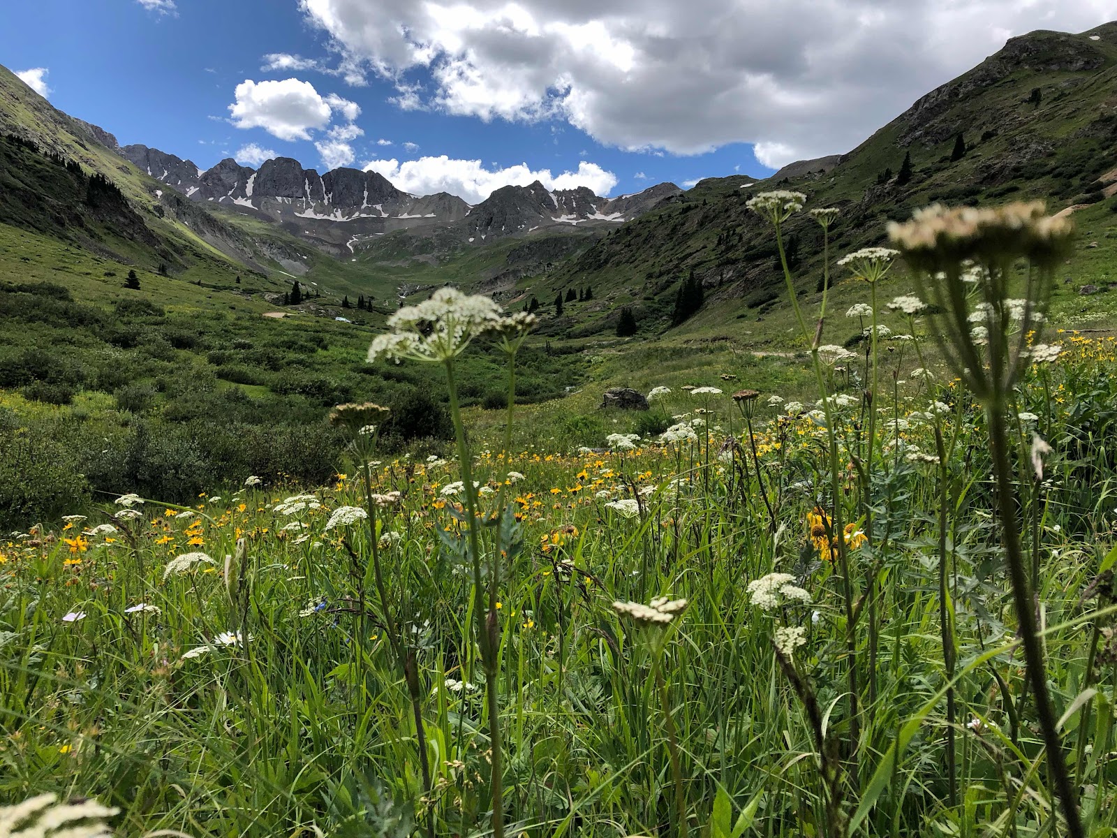 Wow, I believe that was the most spectacular day I have ever had on a bike. The scenery was uterrly spectacular and the first hand view of the power of nature was truly awe inspiring. We started our day from Williams creek campground on the alpine scenic loop and climb slightly but steadily through the valley passing the first of many avalanche destruction zones. The camp host tells us that one of the avalanches took out the sheriffs home and barn but we saw no evidence left of the home or barn. We enjoy a leisurely morning until the OHV traffic starts in earnest and we are bathed in a nearly constant cloud of dust. Dispite the busy traffic the road is amazing, a steep cliff on one side and a sheer drop off on the other. Eventually the valley narrows and the road takes a turn upwards, for the next 10kms the road keeps a steady 6-8%grade before getting properly steep for the last 5km. Each turn in the road brings a fresh view and more climbing as we snake our way between 14,000ft peaks. Some time after 2pm we summit the 12,640ft cinnamon pass to the cheers of the Jeep drivers and park staff. We spend a little while basking in our success then start the steep and bone shaking decent to animias forks ghost town. The town once housed over 500 but was short lived and within 30years of its inception is abandoned for easier living and mining further down the valley. A dozen structures still remain including a out of place looking victorian style home with big bay windows. The buildings are all in rough shape and quite obviously occupied by rodents of some variety but absolutely fascinating to walk through and imagine their past and the struggles of their inhabitants.